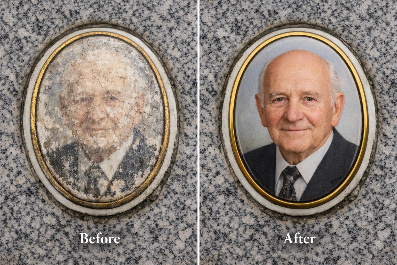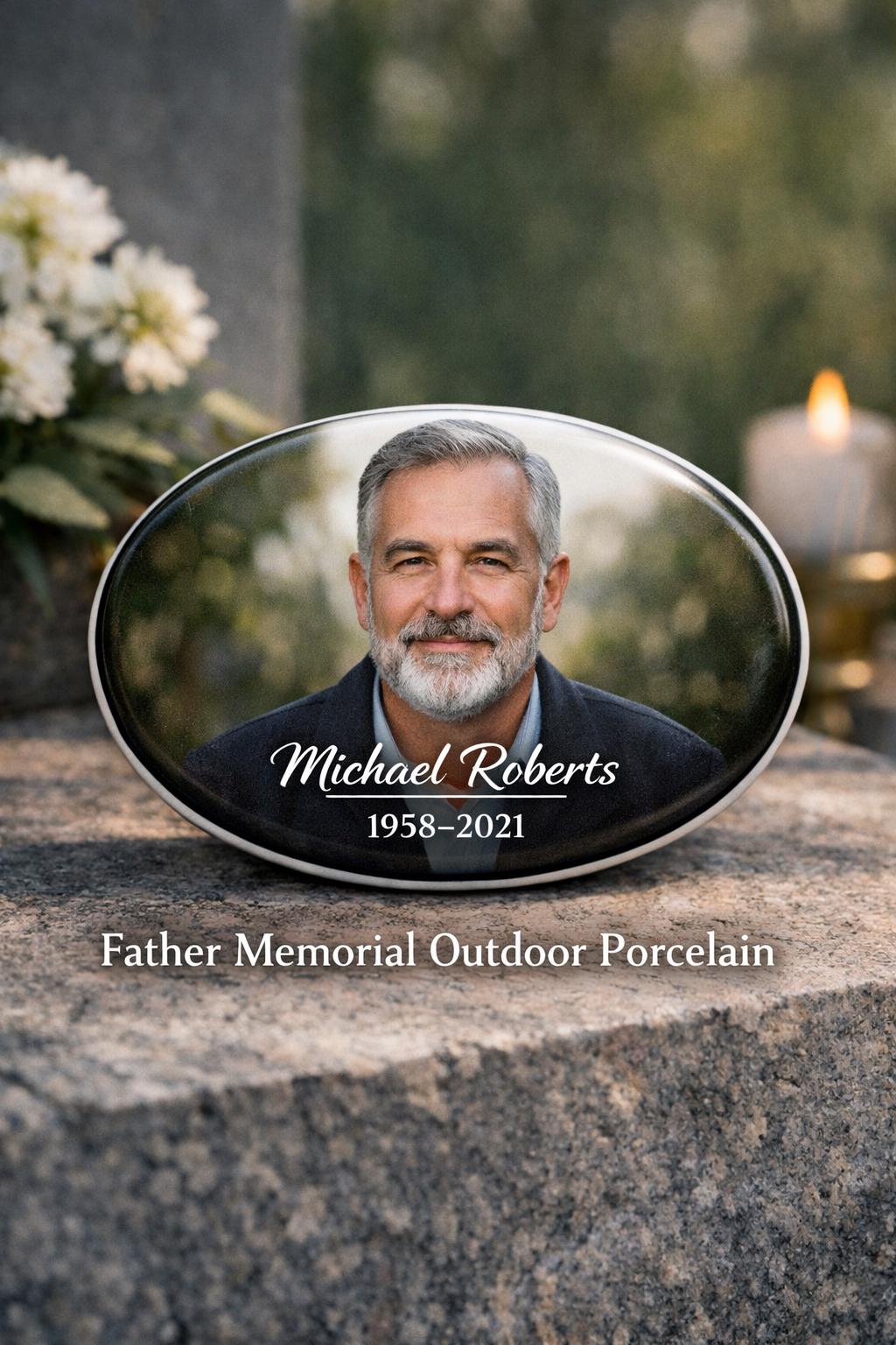 Guide to porcelain photos for headstones: sizes, durability, oval vs rectangular formats and cemetery standards.