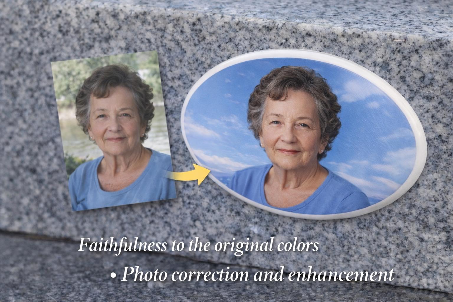 Each photo is individually adjusted for balance, contrast, and background harmony to ensure a respectful and natural result.