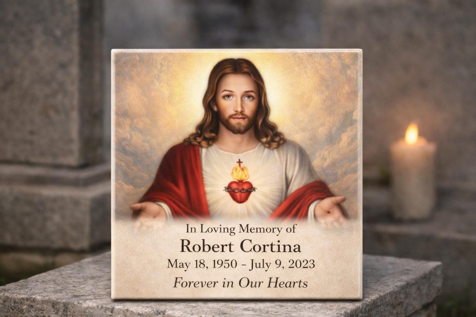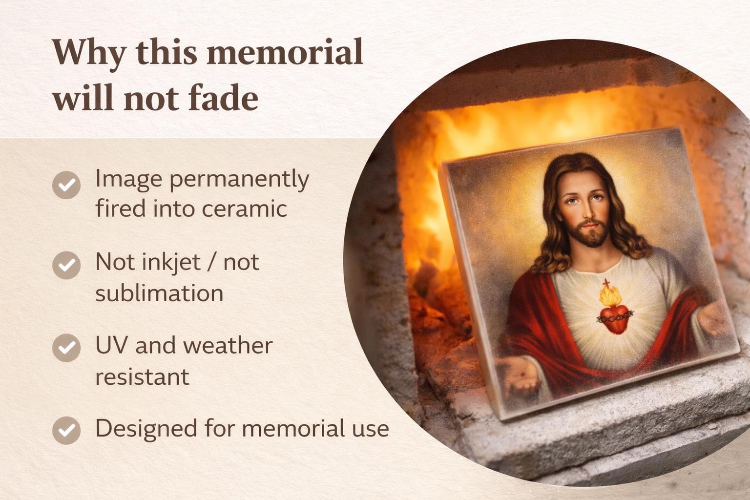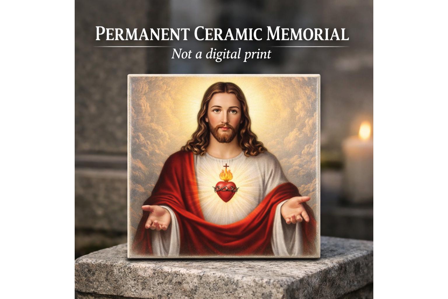 Sacred Heart of Jesus ceramic tile for graves, headstones, and memorial spaces.