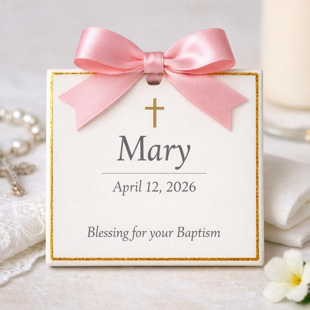 This Baptism Name Blessing tile celebrates the moment a child receives their Christian name and begins their life journey in faith.
